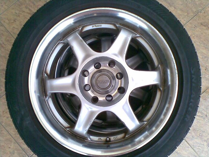 MrRonin 4,000 RPM Senior Member Joined Nov 7, 2006 Messages 4,320 Points 1,638 Sep 23, 2009 #1 15" KIDS RACING IV with 195/55/15 Bridgestone TYRES From JAPAN 15 x 6.5JJ Offset 35 PCD 100 & 114.3 8 Hole Excellent condition Install for WAJA/ WIRA/ MYVI/ NISSAN/ Toyota Vios Location KLANG, Selangor ( Bukit Tinggi ) Ronin View Photo :- Attachments KR rims.jpg 67.9 KB · Views: 953 Last edited: Jan 29, 2012