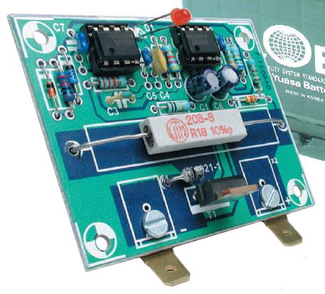 However, it is possible to break down sulphate crystals into lead and sulphuric acid by using high (or very high) charging currents. This method can be used to restore at least part of the lost capacity (see ?Lead-acid battery revitaliser? in the September 2001 issue). Still, it?s better to prevent the formation of sulphate. One way to do this is to periodically apply a load to the idle battery. The circuit described in this article is especially suitable for this purpose.
