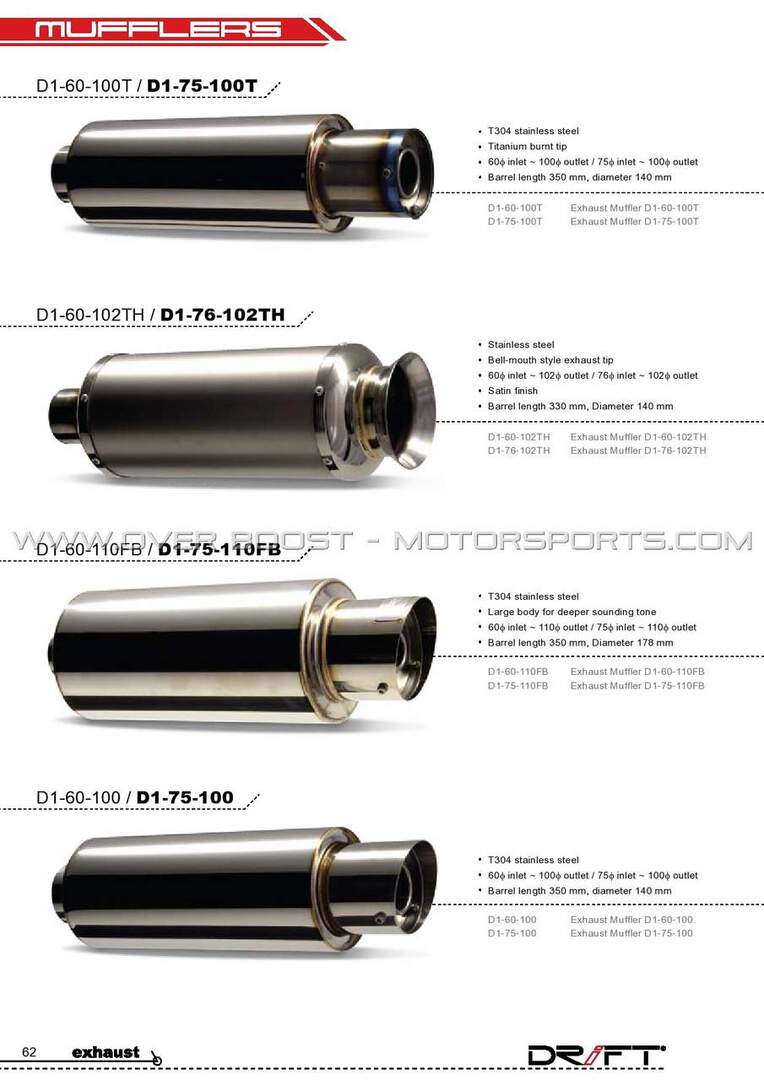 - All mufflers are made of T304 Stainless Steel material