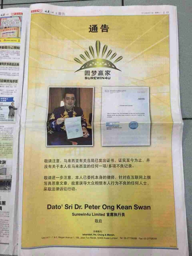 Introduction of Dato Sri Dr Peter Ong- Surewin4u
