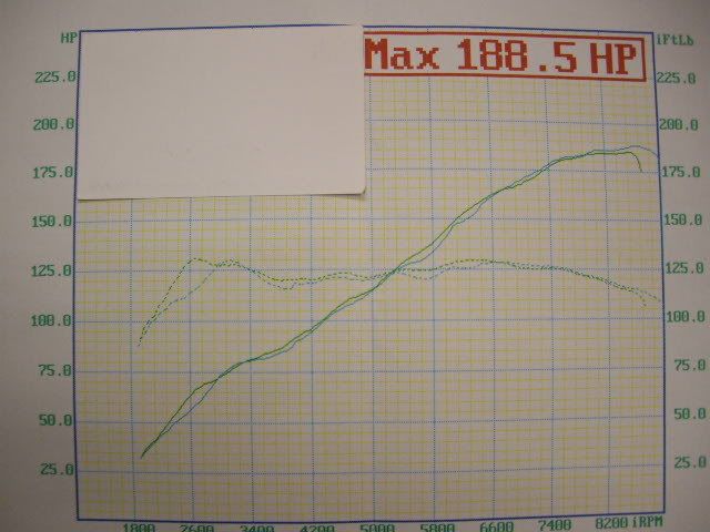 Results on dyno-dynamic 188.5whp @ 8800rpm and average torque of 125wFtlb.