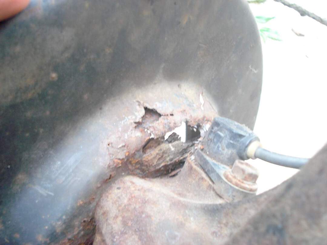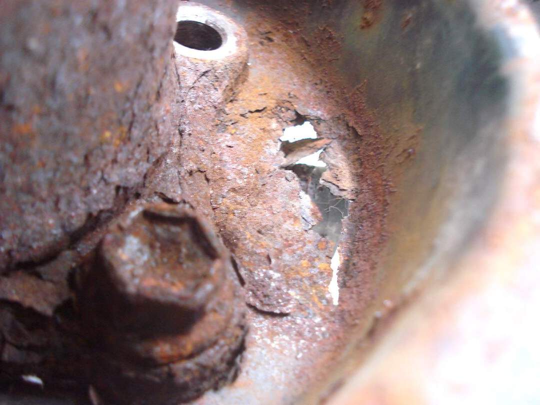Can poke thru the rusty rotor shield with finger.