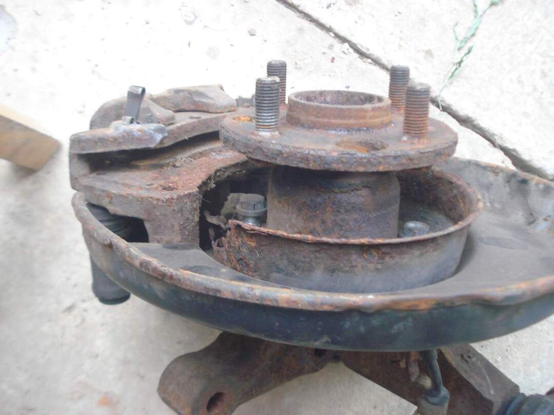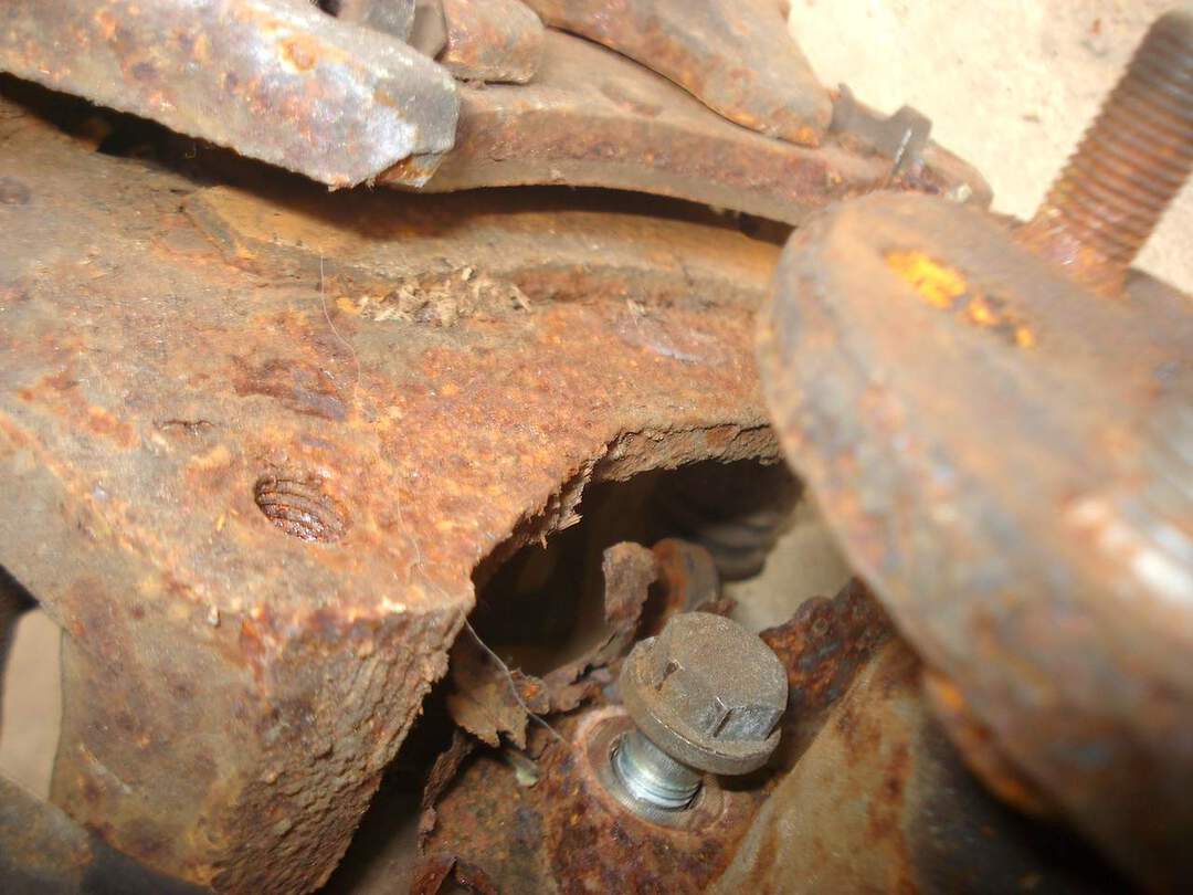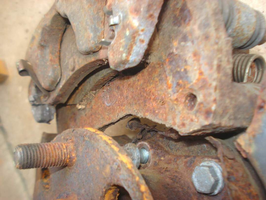 I'm worried about the caliper bracket too. The rust is so thick that it formed layers of flakes.