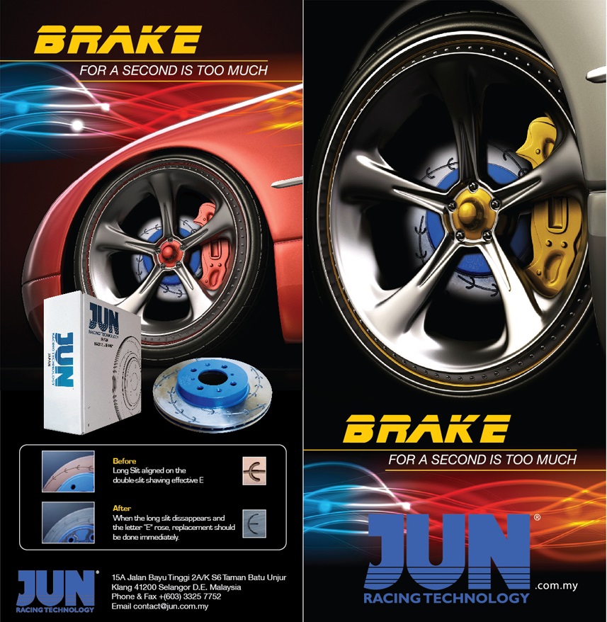 Long slits aligned on the slit with the word E, called ” E SLIT ROTOR”. The E-Slit will smoothly shave the pad and resulting in a fast and efficient braking force to slow down the vehicle and still maintain the brake pad in desirable condition.The advantages of the “E SLIT ROTOR” are also proven to expel water in wet conditions,as well as removing dust and debris along the way.When the long slit disappears together with the letter “E” rose. Replacement should be done immediately.