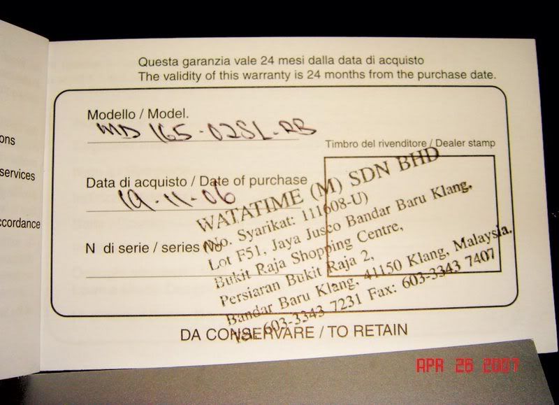 The warranty card.