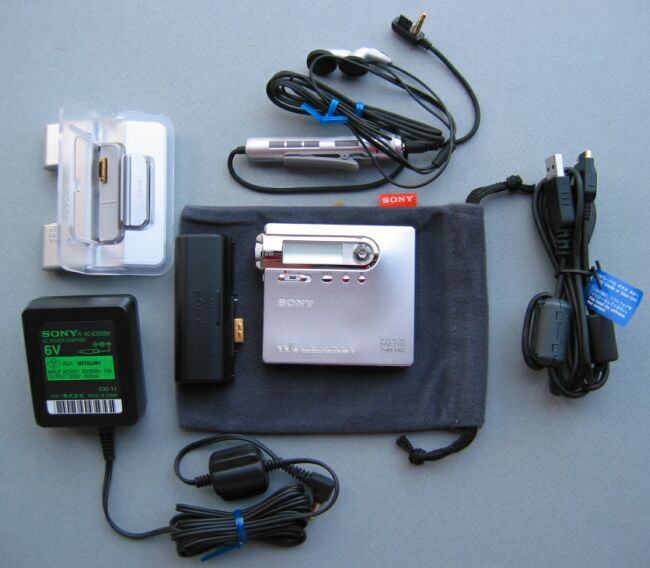 Package include: Sony MD Walkman, Charger, Earpiece, Cradle, Sony Recordable MiniDisc 1pcs