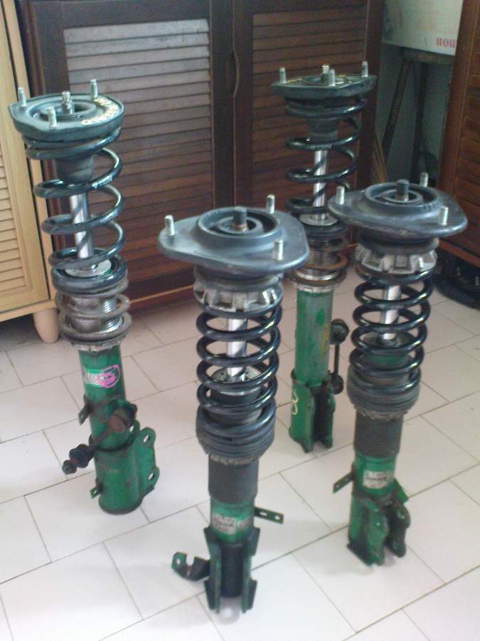 hi guyz, got tein adjustable absorber going up for sale, HA type, sport spec (driving master), item in good condition (no leaking) s its juz been serviced by wang (bkt puchong), hi-low n soft-hard, double spring, 12-stage adjustment for soft-hard, green color, d spring oso tein, come together wif top mount..... :-)