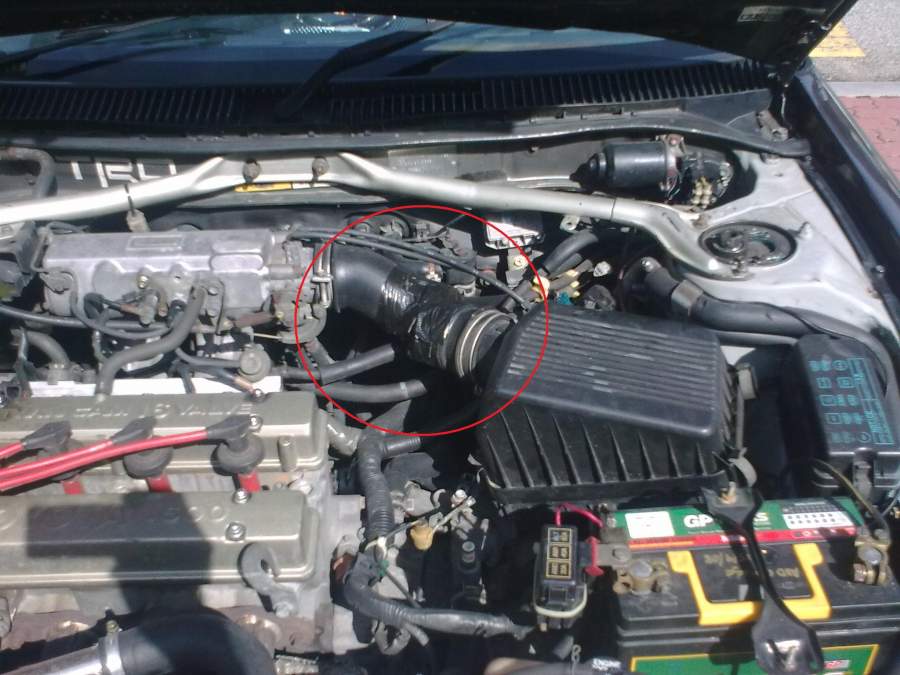 Im looking for air ram/hose standard for ae92 4age tvis air filter box. Circled as shown in the picture. anybody who have 1 can pm/sms me 0173197221-faisal. Need it urgently as mine broke already. Temporarily using ductape to cover the hole.
