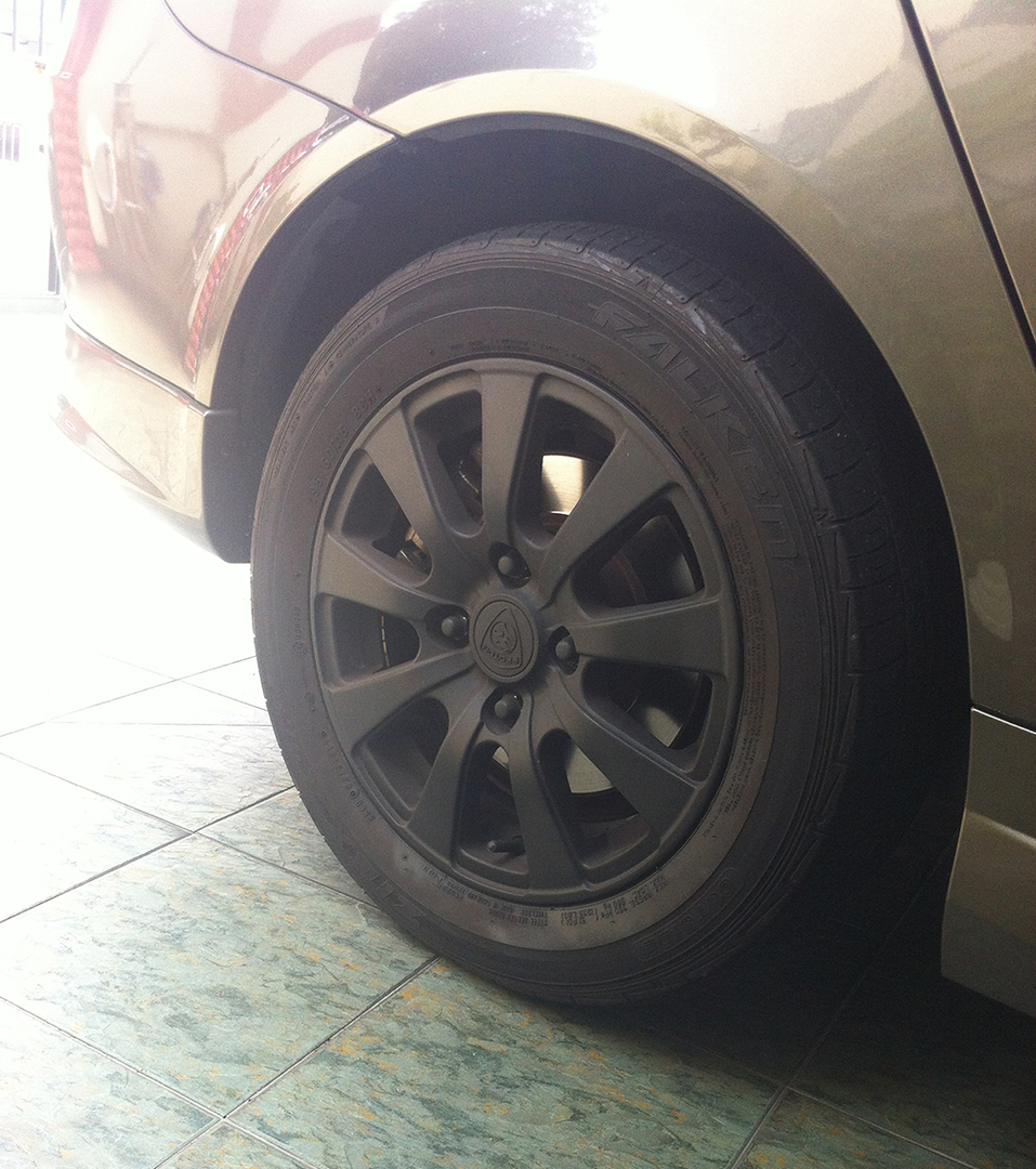 Proton Persona Elegance Standard Alloy Rim 15" PCD114 4-hole plastidipped matt black, reversible to original colour Comes with 2 Falken 912 and 2 Goodyear NCT5 tire around 30% Can contact me by Pm or Whatsapp Location is at Ampang/KL